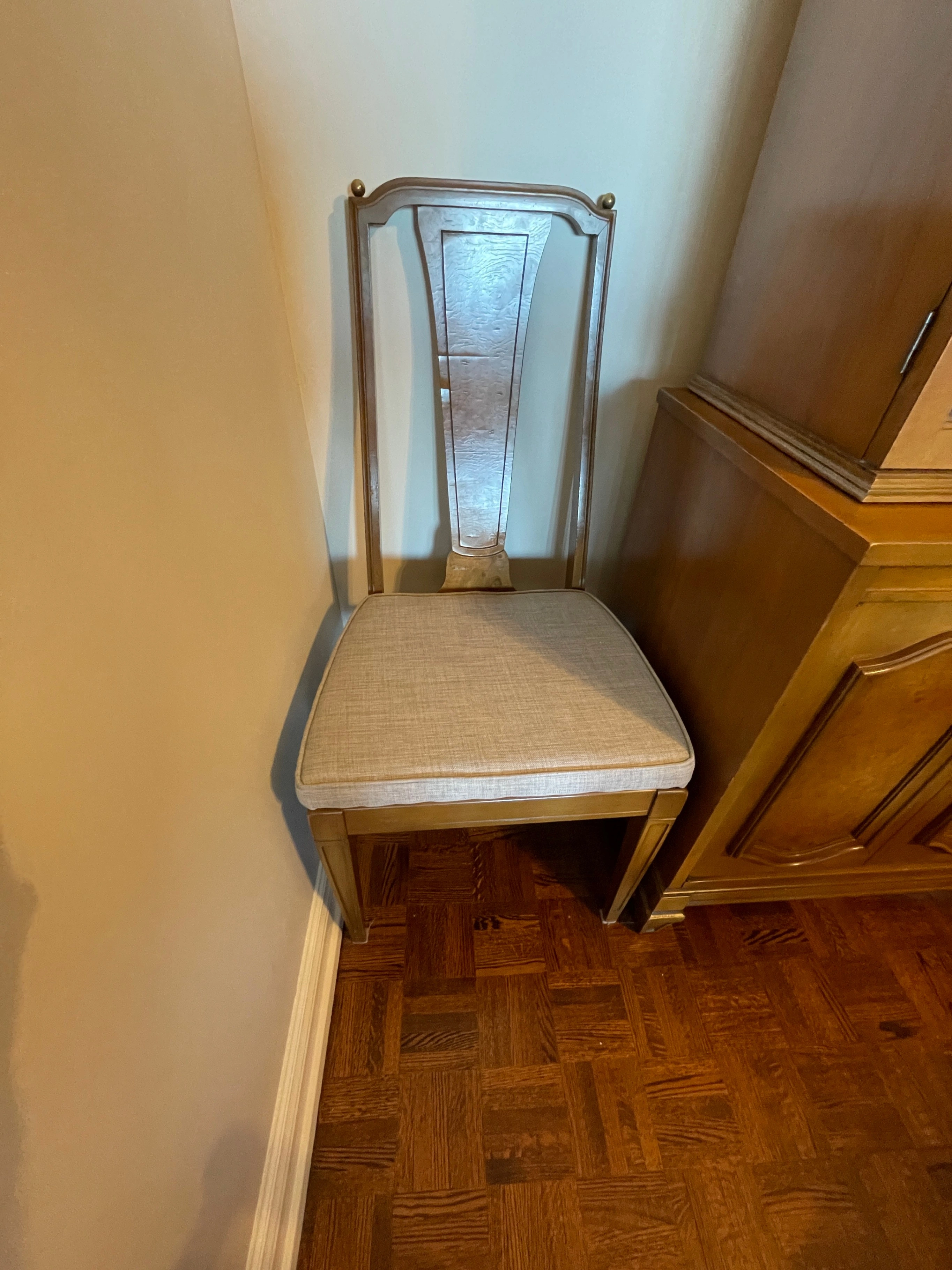 • Newly reupholstered seats in neutral, modern fabric