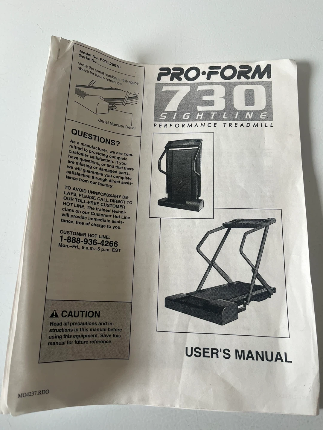 This Pro-Form 730 Sightline treadmill offers a reliable way to get your workout in. It features a clear display panel for tracking your progress. This treadmill is great for home use.
