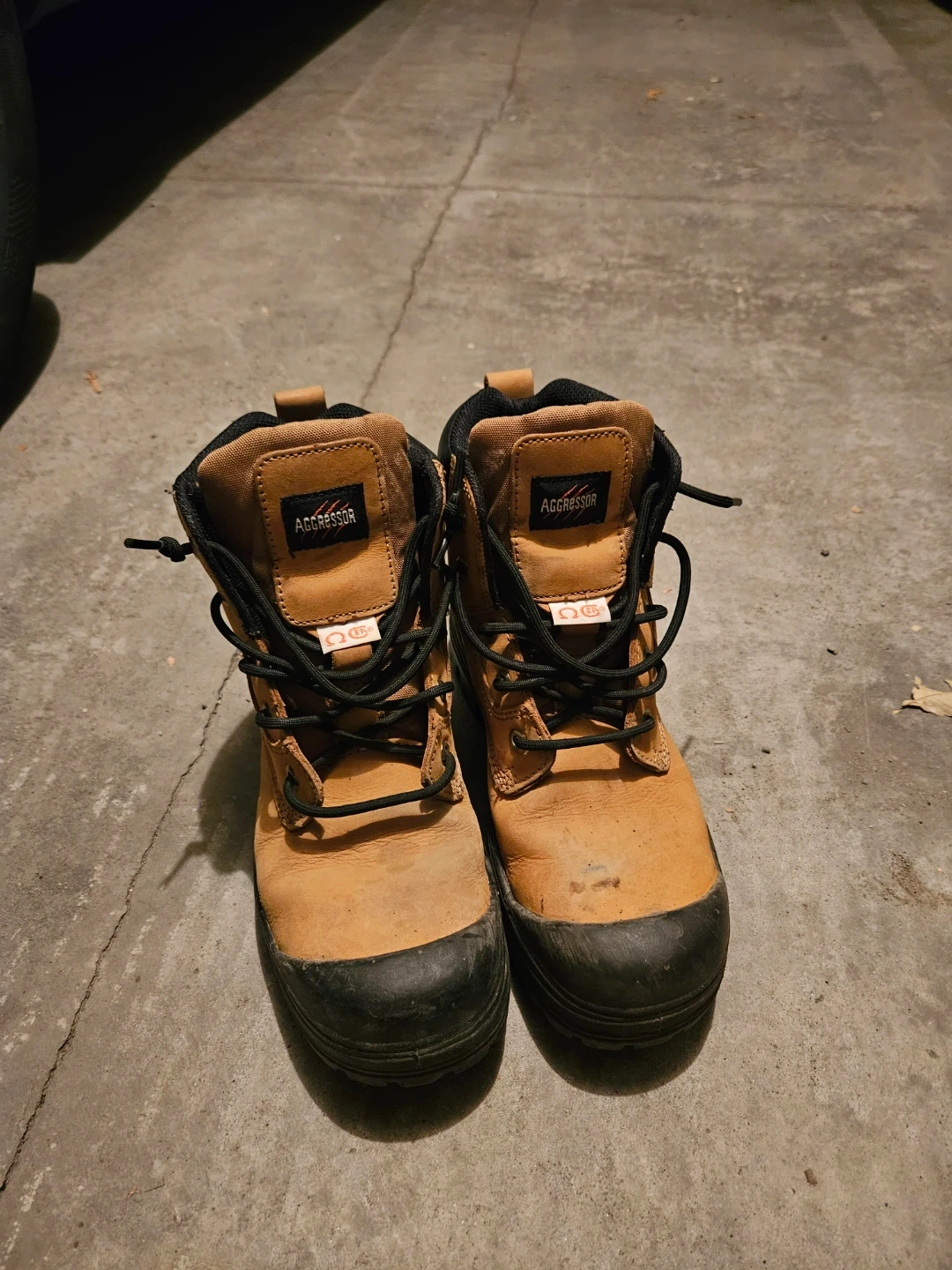 47Selling a pair of Aggressor work boots in size 8 men. They fit more like 8.5 or even 9. They are in good condition and ready for a new owner!