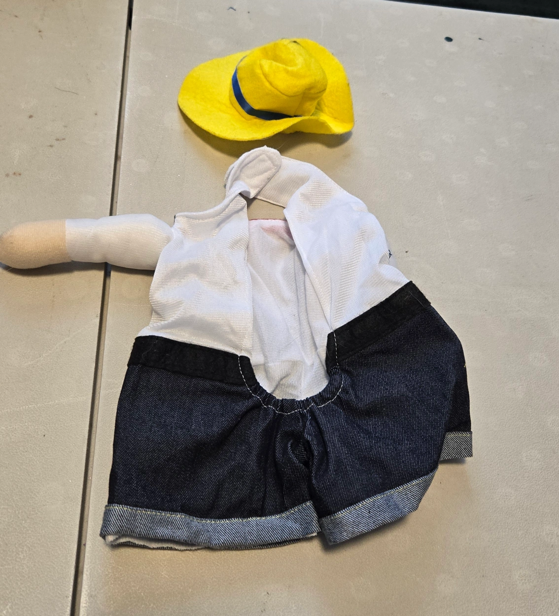 Howdy partners! I'm selling a cute little cowboy outfit for a your furbaby. It includes a yellow cowboy hat with a blue band, a denim-look vest, and matching shorts. Perfect for dressing up your favourite furbaby for some rootin' tootin' fun for Halloween..pick up SE flats
