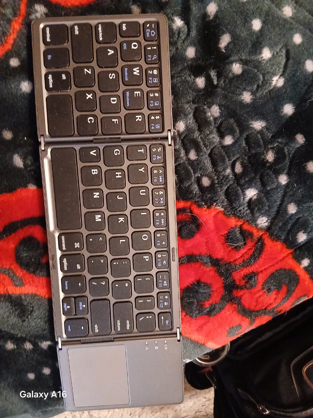 This foldable Bluetooth keyboard offers a compact and portable typing solution. It's designed for easy connectivity with your devices and includes a built-in touchpad for convenient navigation. Perfect for on-the-go productivity!