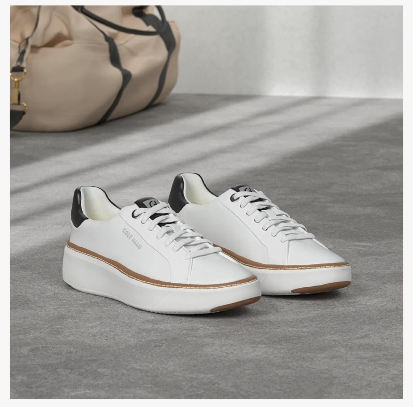 White leather sneakers from Cole Haan. These stylish kicks feature a comfortable insole and durable rubber outsole. They're perfect for everyday wear.
