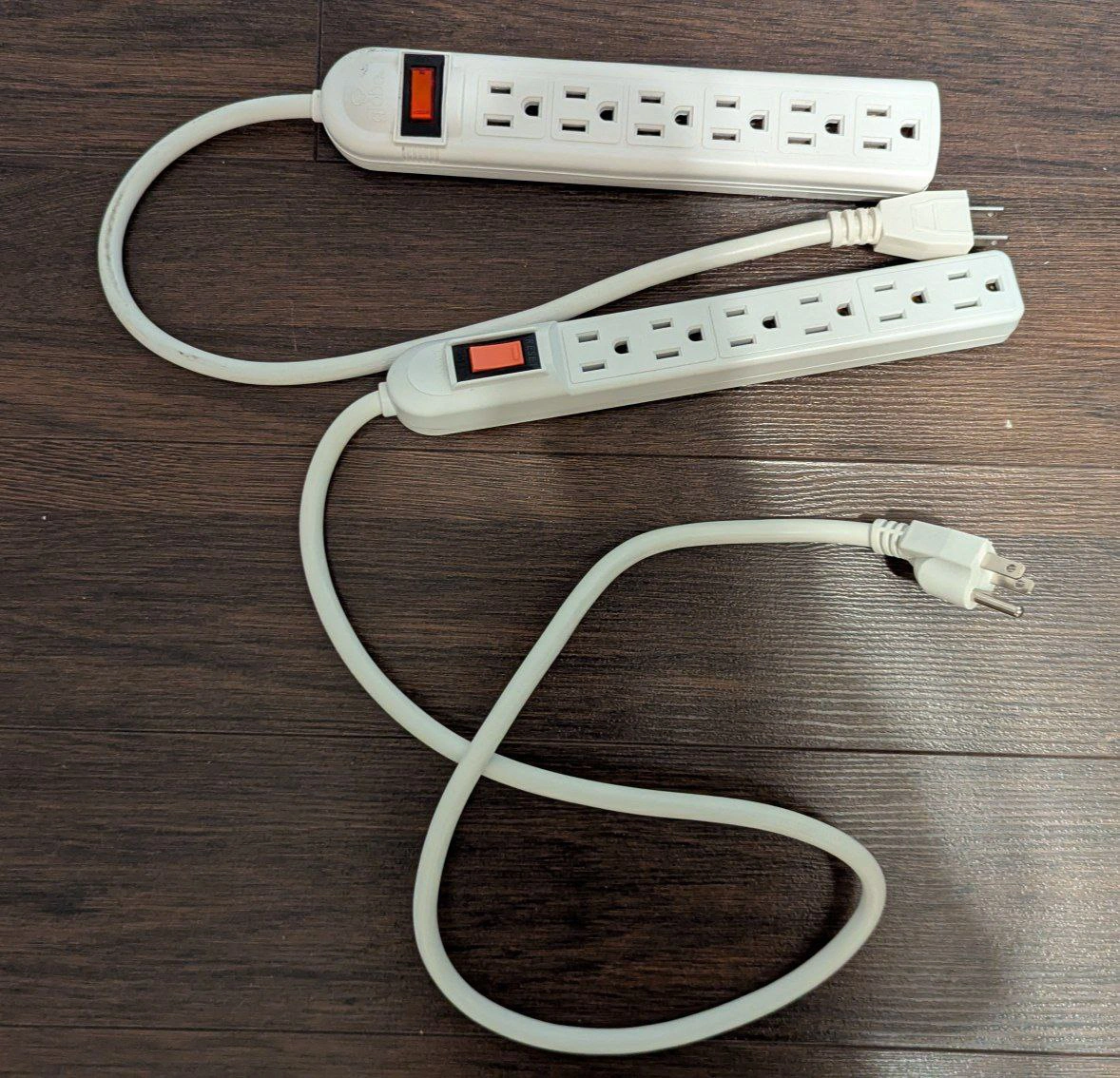 Two 6-outlet power bars with surge protector and on/off switch. Selling because of moving. Check out my other moving sale ads.