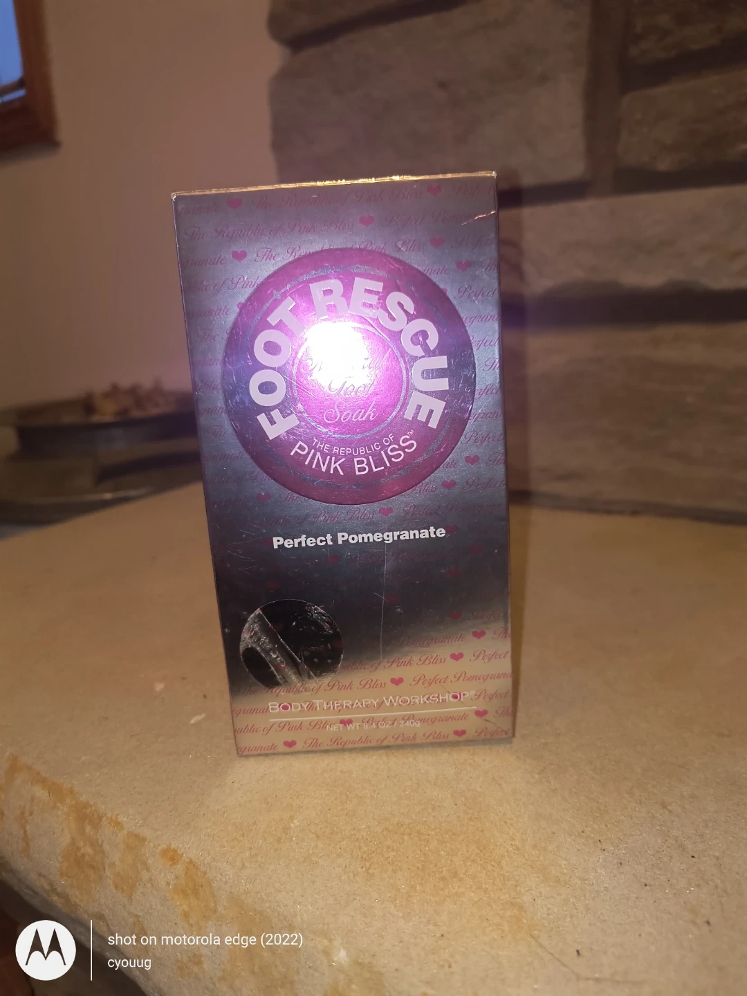 This is the Foot Rescue Soak from The Republic of Pink Bliss. It's the Perfect Pomegranate scent. Includes 6oz of product. Perfect for a relaxing foot soak!