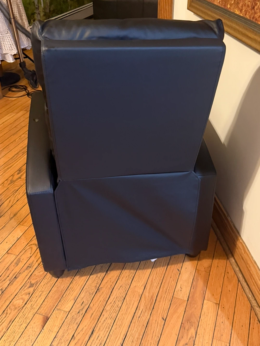 Selling a matching set of four comfortable black recliner chairs. All in excellent condition with soft faux-leather upholstery, cushioned backrests, and smooth reclining function. Perfect for a home theater, living room, office, or waiting area.