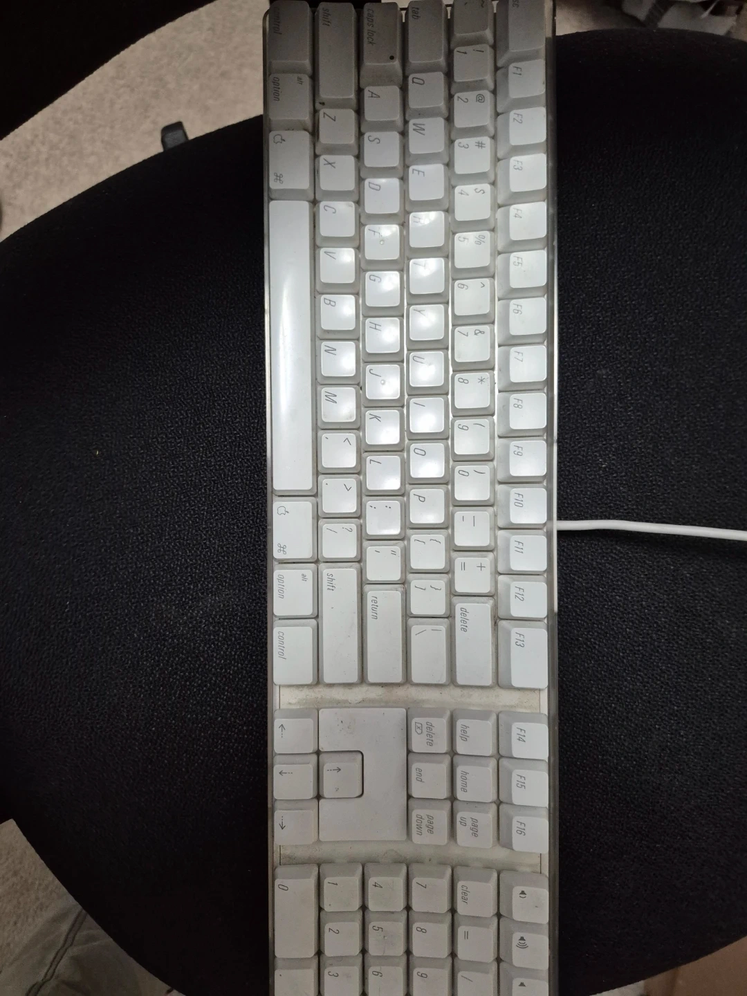 Apple wired keyboard in white. It's a standard full-size layout. This keyboard connects via USB.witb two USB i puts 2 inputs of USB
