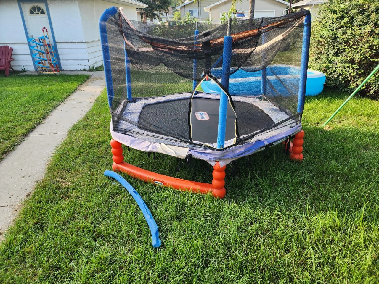 Selling a Little Tikes trampoline! It's in good condition and perfect for kids to have some fun outdoors. The trampoline features a safety net enclosure and padded frame for added protection. It's a great way to keep your little ones active and entertained!