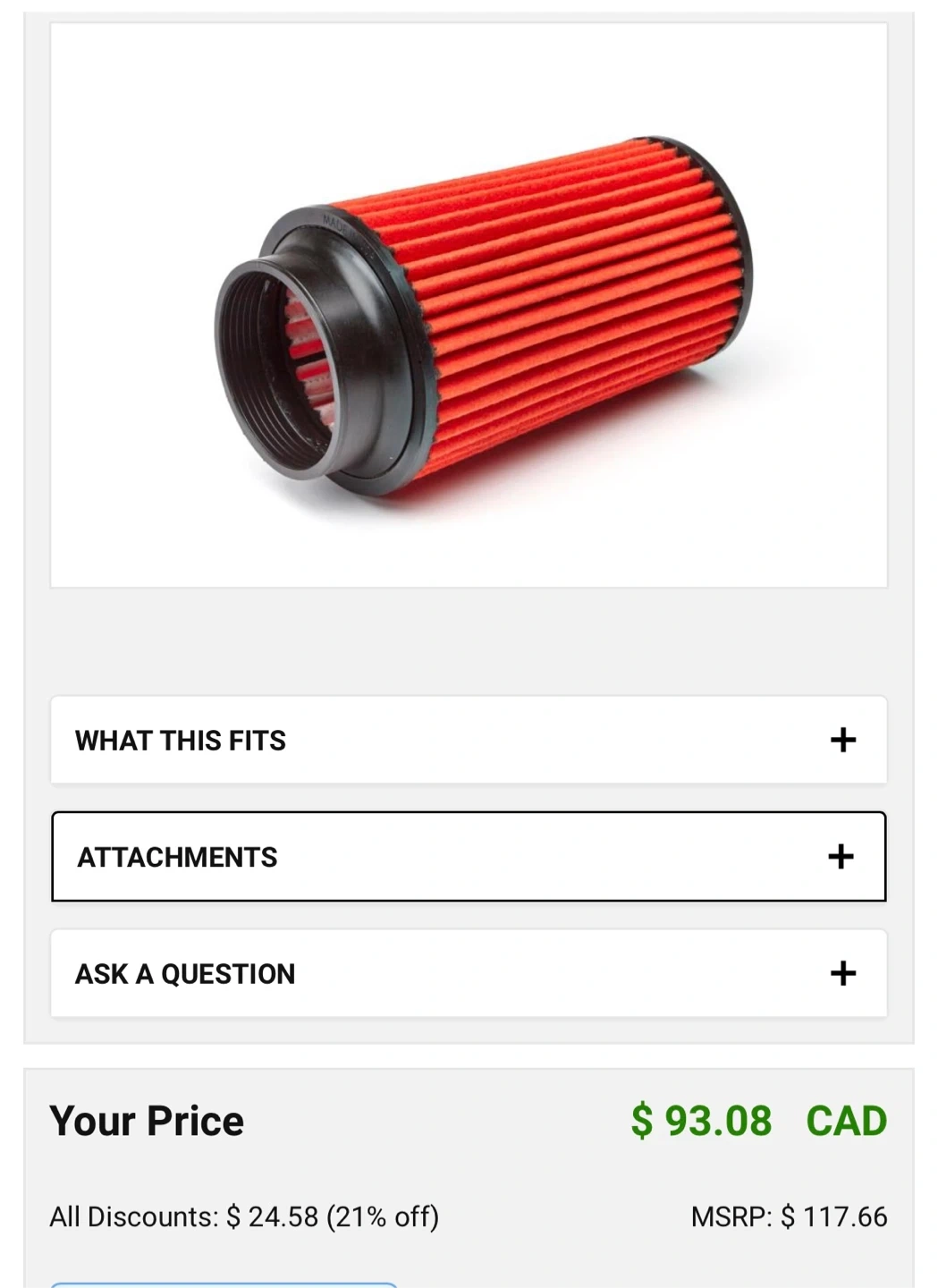 Selling a performance air filter, still in its original packaging! The filter is red and appears to be in great condition. Perfect for enhancing your vehicle's performance. This was originally $117.66