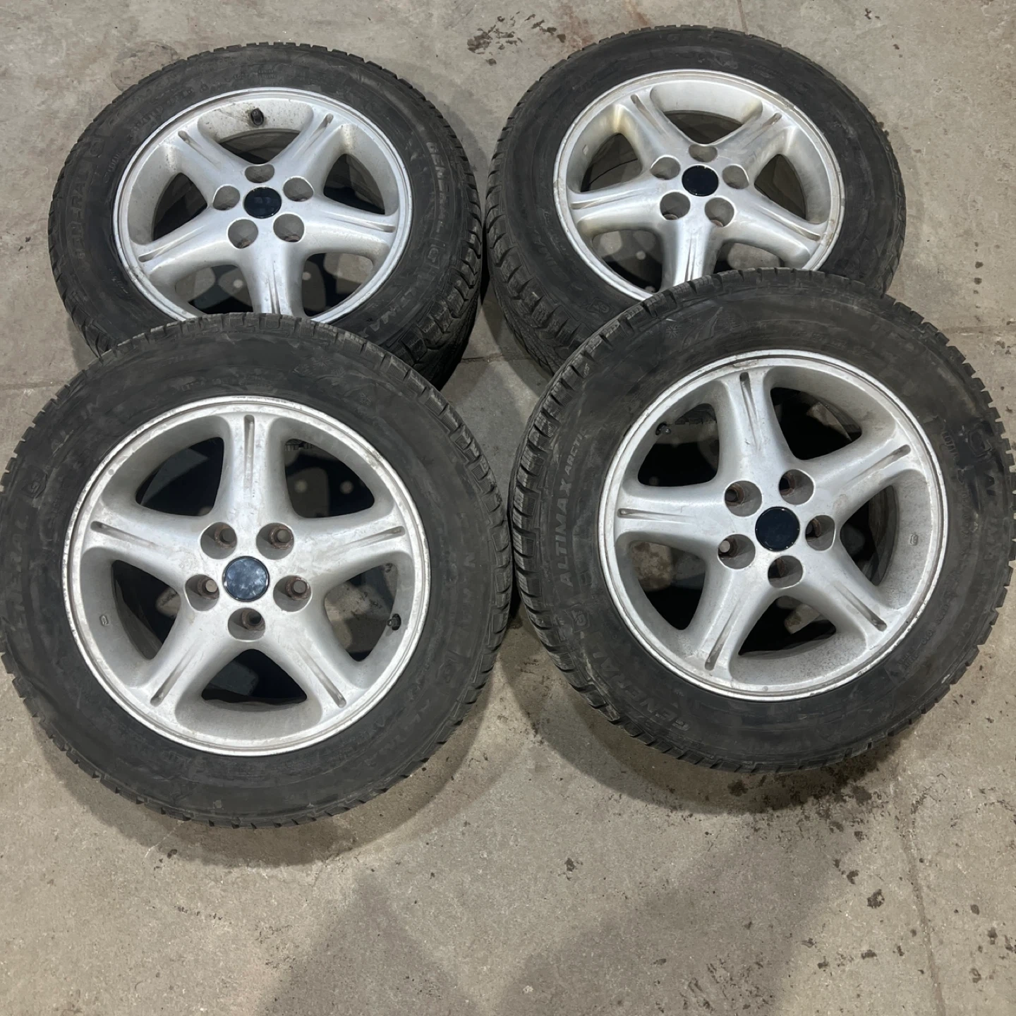 Set of four 205/60R16 General Altimax Arctic 12 snow tires with about 70% tread remaining. Mounted on aluminum alloy rims 5x114.3 +42 67.1