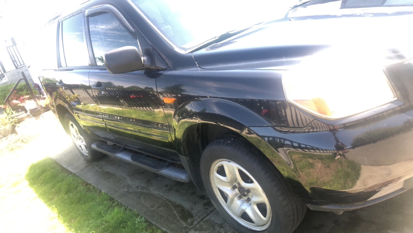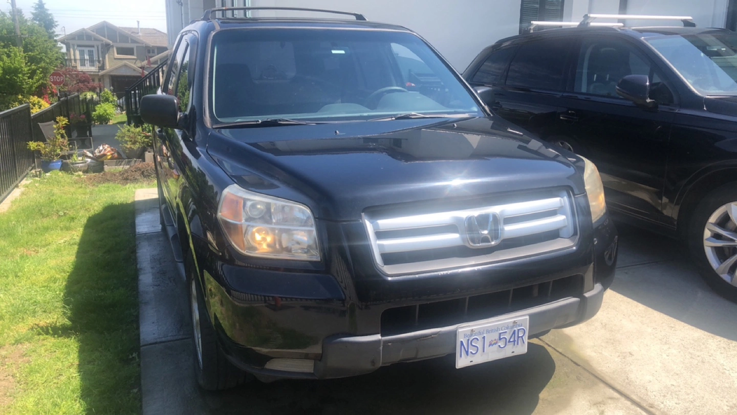 Black Honda Pilot. 107,018 miles or 172,228 kilometers. SUV. Roof rack. Needs interior cleaning. Minor wear and tear