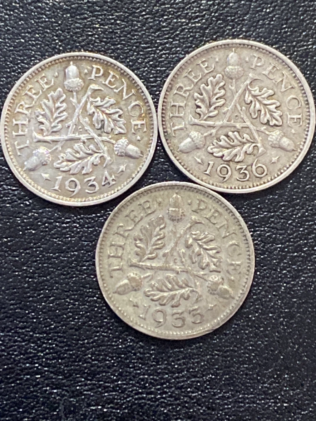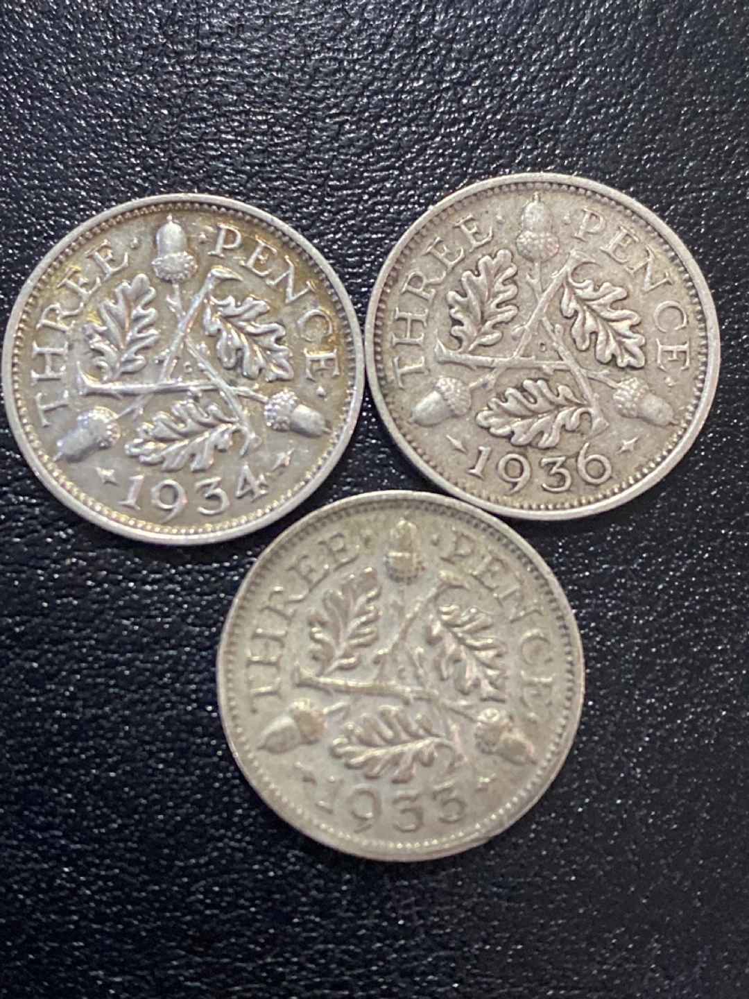 Buy & SellThree silver Pence Coins (1934, 1935, 1936)Three silver Pence Coins (1934, 1935, 1936)$60Collection of three British three pence coins. Includes coins from 1934, 1935, and 1936. These are silver-plated currency.WHERE TO MEETCheck LocationView MapSELLERverifieddiamondCorso Italia73566 reviews0 chats·0 favorites·7 viewsSEND CHAT TO SELLERHi diamond! I’m interested in your listing.Hi diamond! I’m interested in your listing.Get the Karrot app to chatSign In to chat