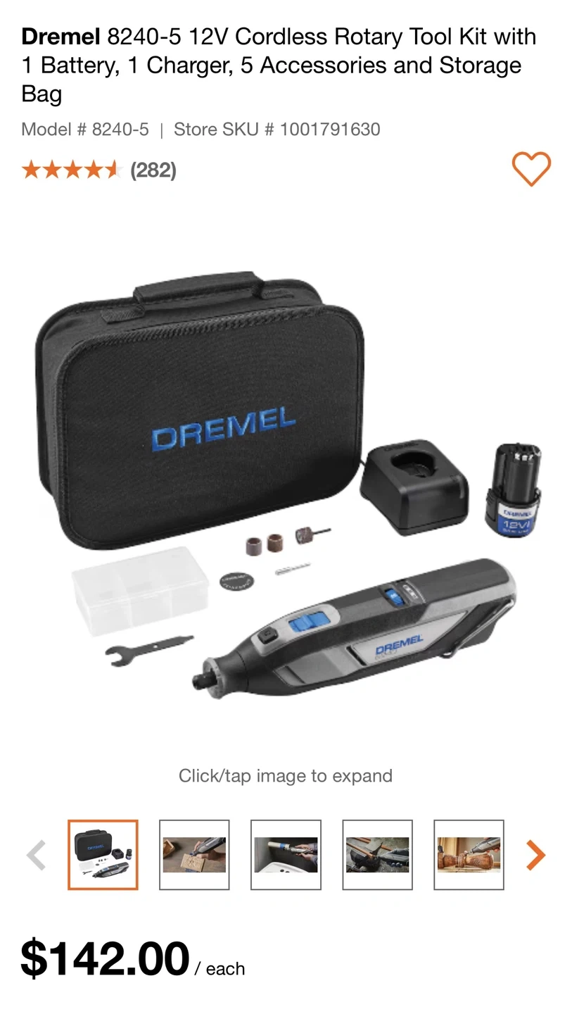 The Dremel 8240 offers high performance and versatility, packaged in a sleek new tool design. As the new flagship 12-volt cordless rotary tool, the 8240 features an optimized battery platform allowing DIYers to comfortably tackle a wide range of home improvement projects without the distraction of a cord. The powerful 12-Volt / 2 AH Lithium-Ion battery provides maximum performance for extended working sessions. The new 8240 provides cord-like power in cordless form giving you the confidence to tackle the toughest of jobs.