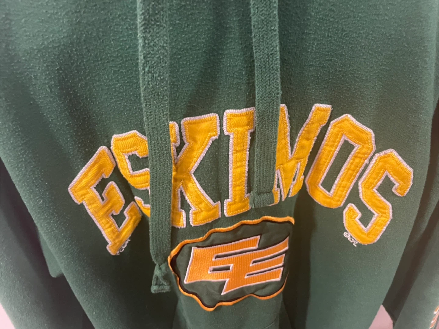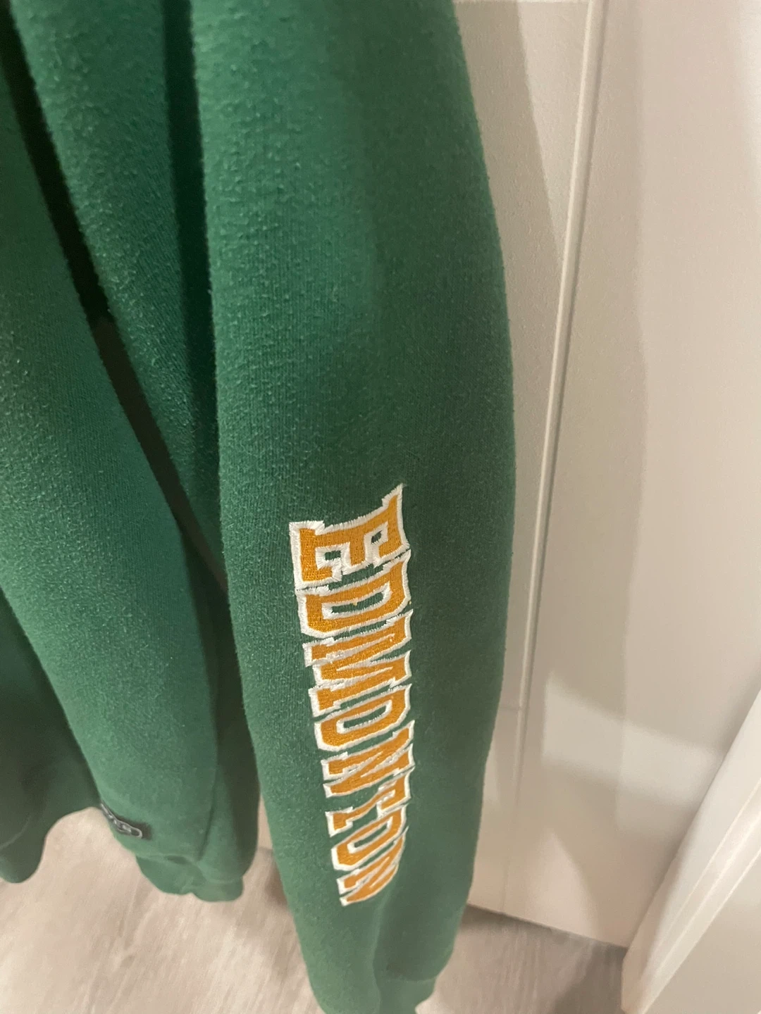 Edmonton Eskimos Football Hoodie: used - good. Haven’t worn it. Size Large. Need gone asap! $20 item. Pick up only! No deliveries! Cash or E- transfers is preferred! MSG me if you’re interested in buying the item. MSG me for more information if needed.