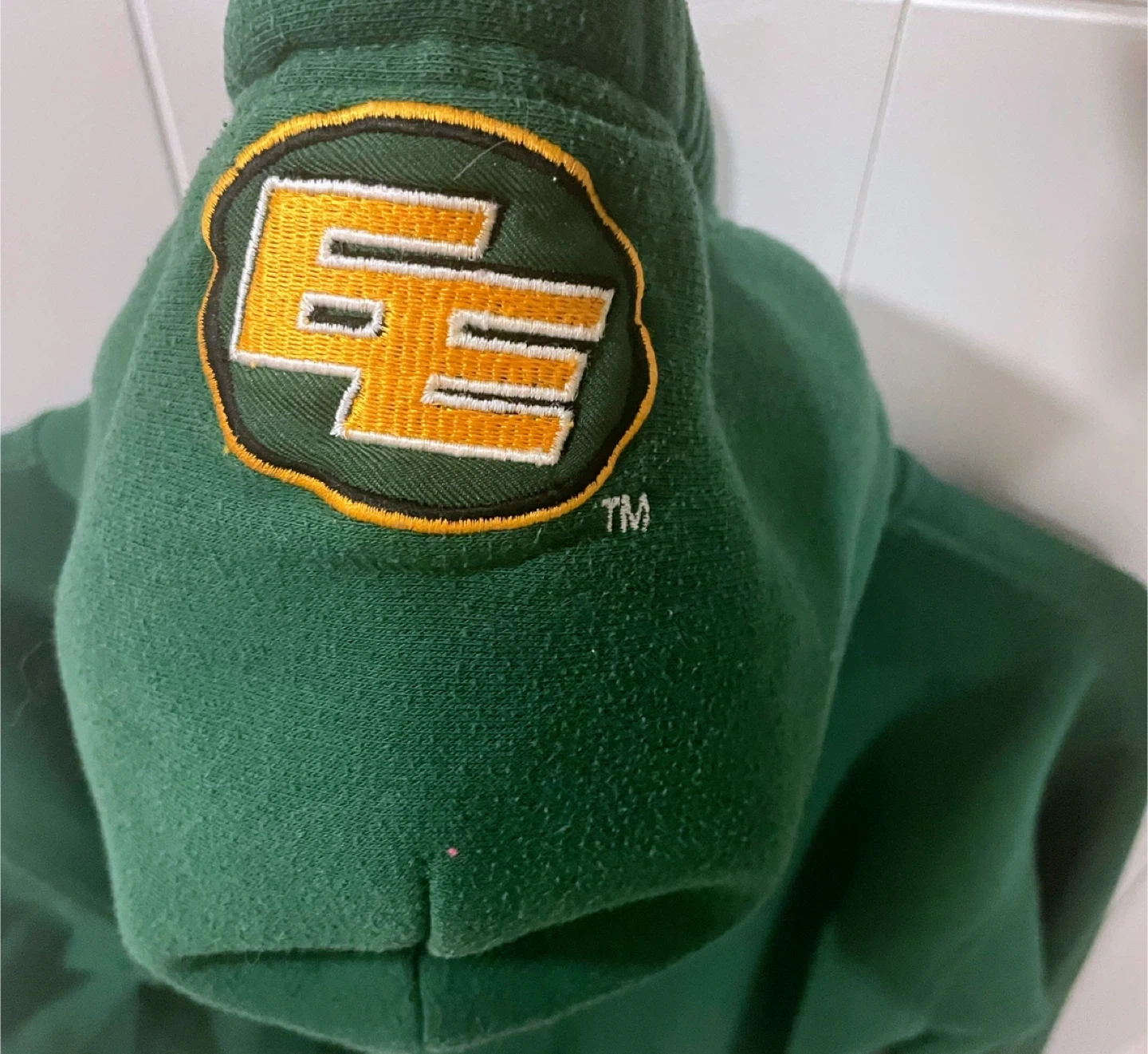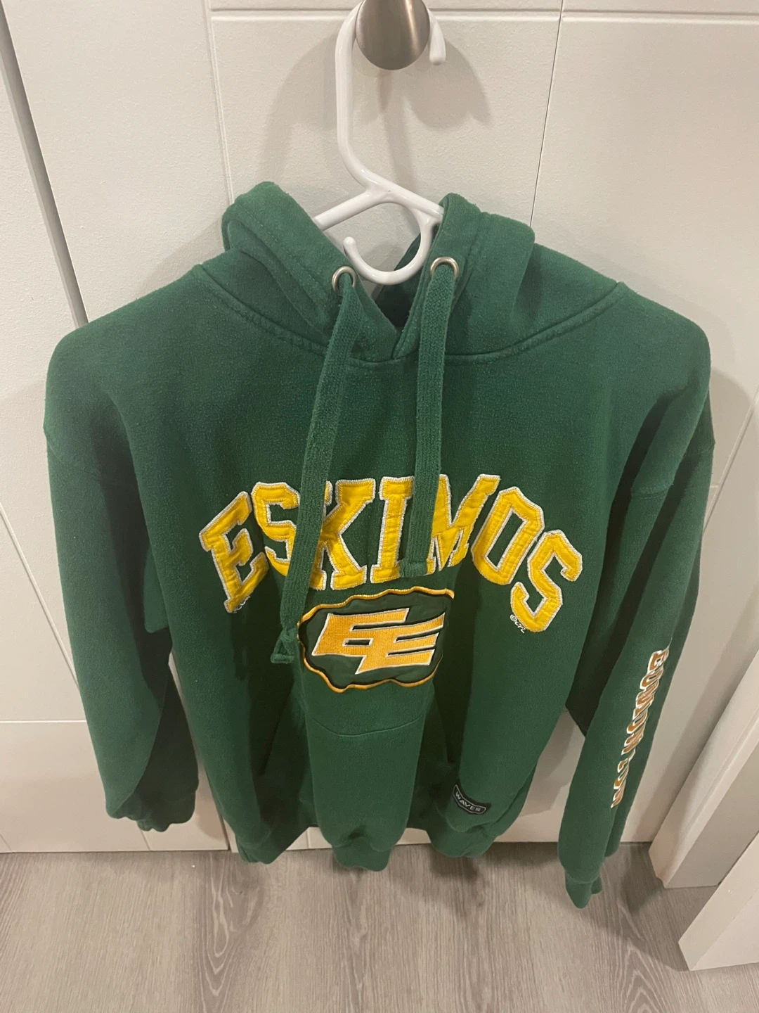 Edmonton Eskimos Football Hoodie: used - good. Haven’t worn it. Size Large. Need gone asap! $20 item. Pick up only! No deliveries! Cash or E- transfers is preferred! MSG me if you’re interested in buying the item. MSG me for more information if needed.