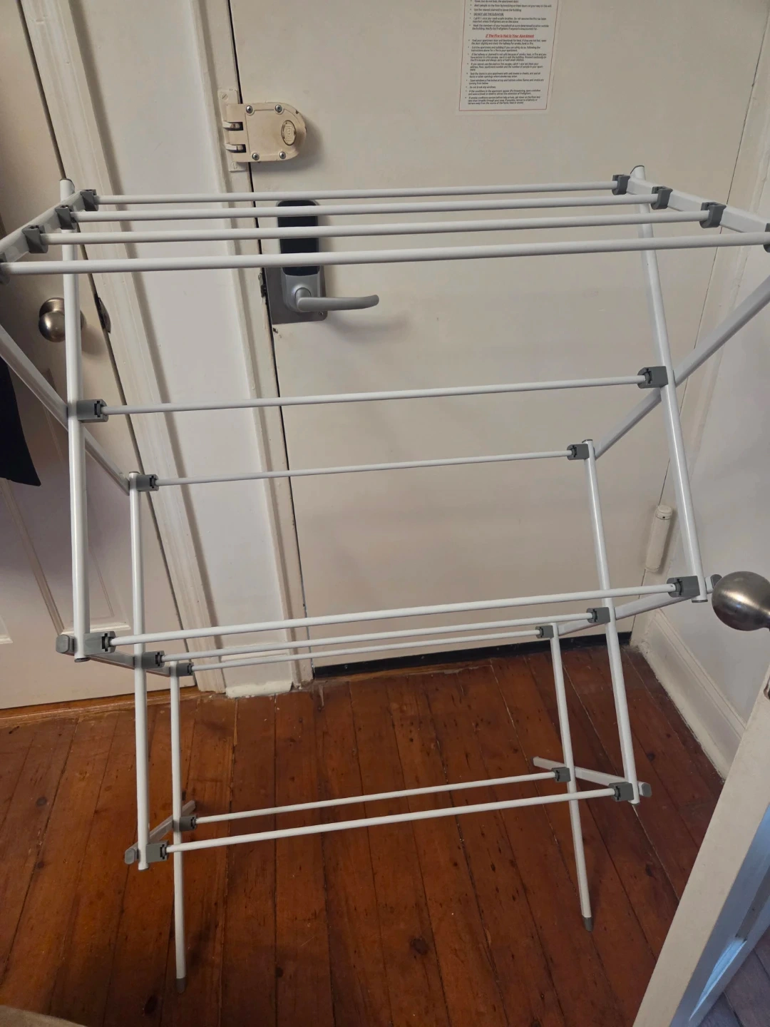 I'm selling a clothes drying rack! It's in great shape and ready to help you save on energy costs by air-drying your clothes. It's lightweight and portable, making it easy to move around your home or apartment. Perfect for small spaces