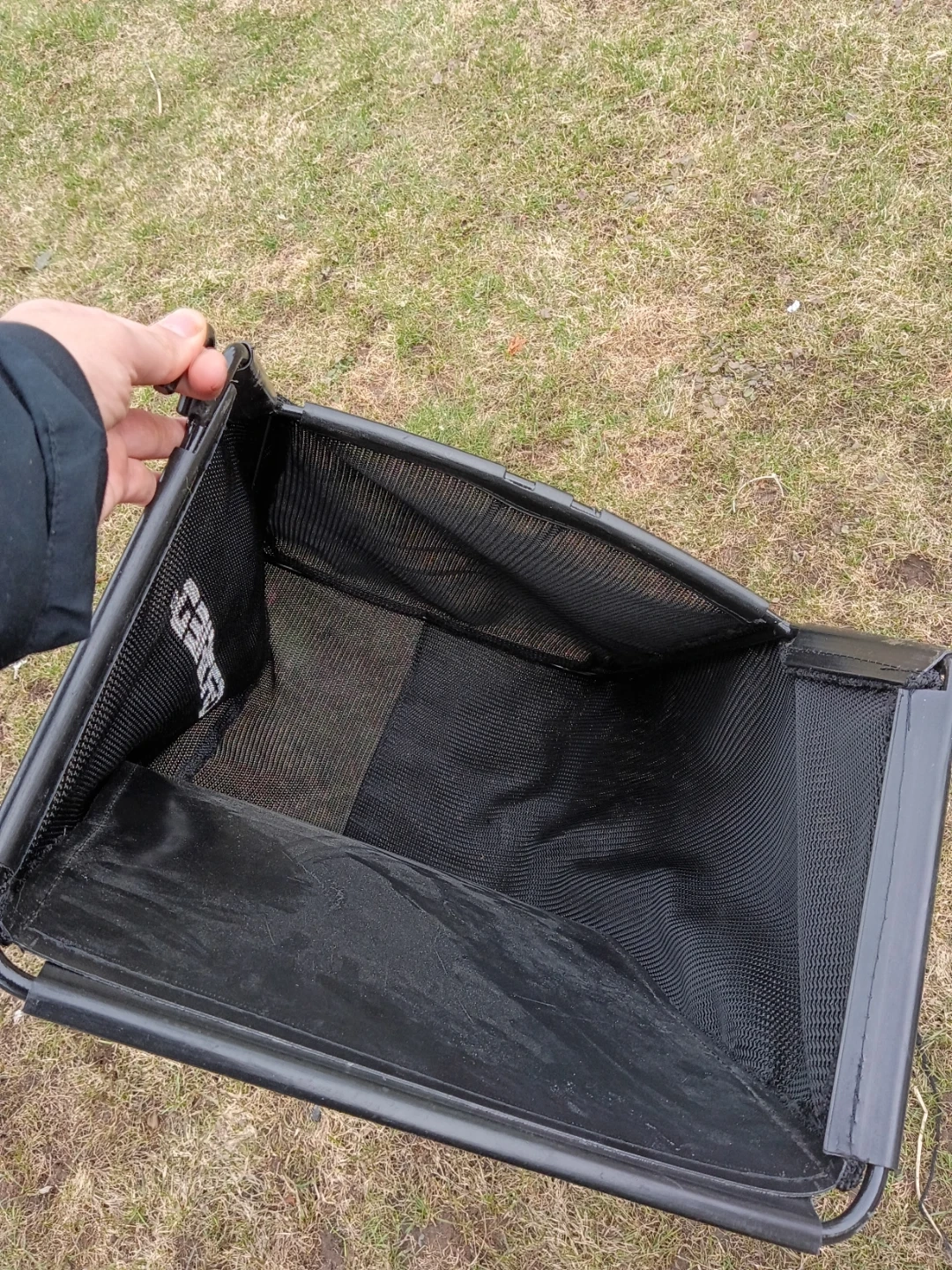 This is a replacement grass catcher bag for lawn mowers. It's made of durable black fabric with a reinforced top. The bag features the "CERTIFIED" logo.