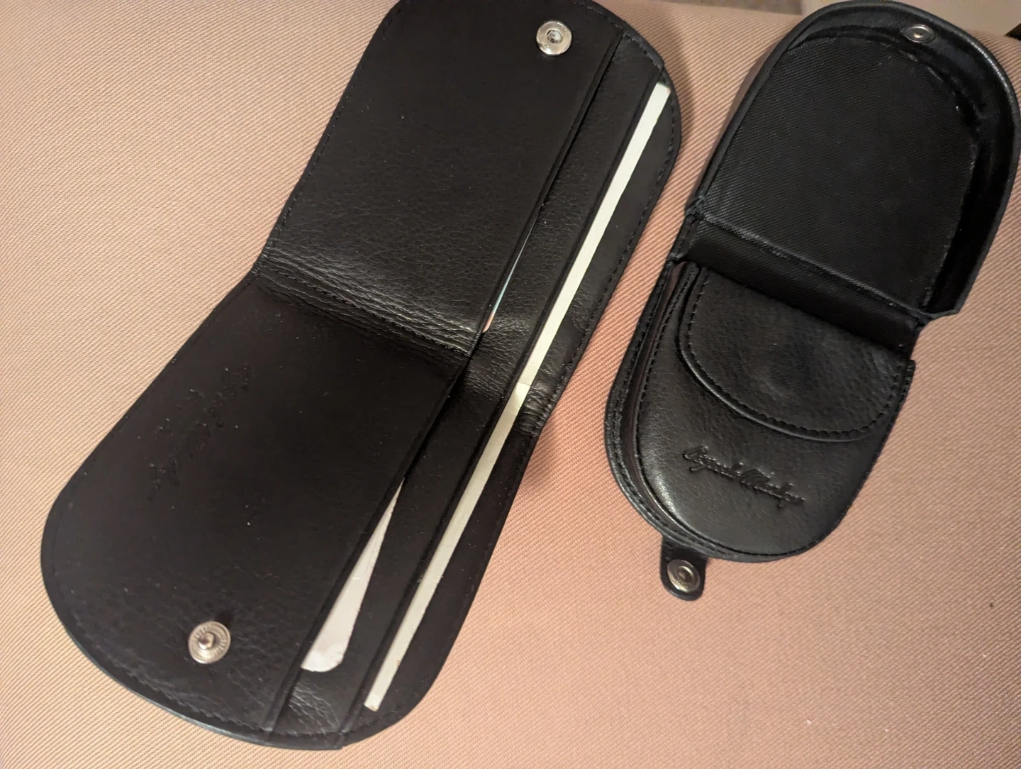 Two brand new Osgoode Marley Wallets in black leather, one coin holder and one billfold.