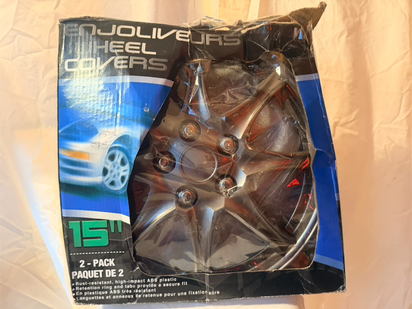 Selling a complete set of 2 Enjoliveurs wheel covers, size 15". They are rust-resistant and made of high-impact ABS plastic. The box includes retention rings and tabs to provide a secure fit. Perfect for giving your car a fresh look!