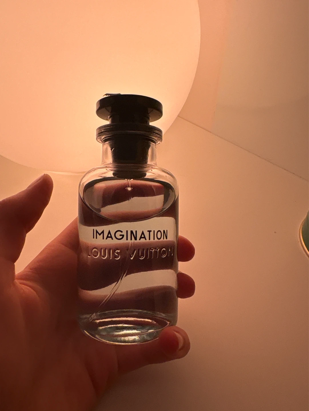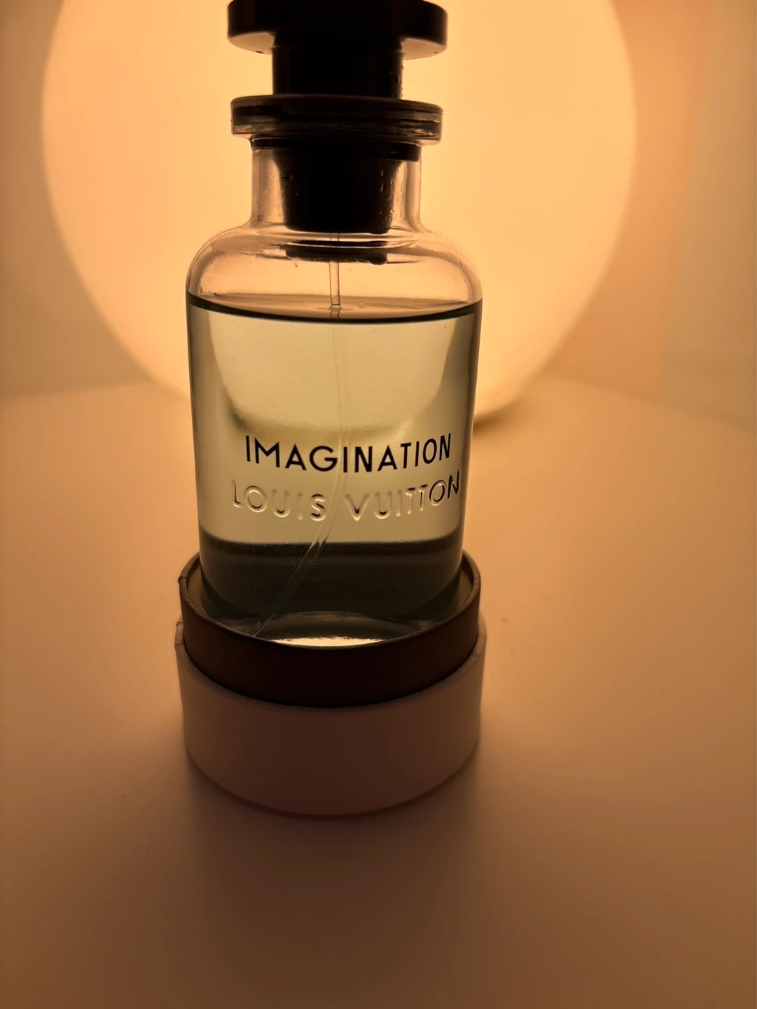 This is a bottle of Louis Vuitton Imagination Eau de Parfum. It's a captivating fragrance with a clean scent. Includes the original box.