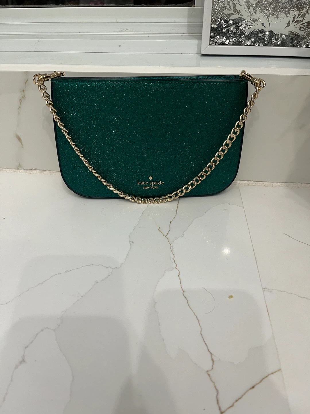 Kate Spade Green Glitter Chain Bag