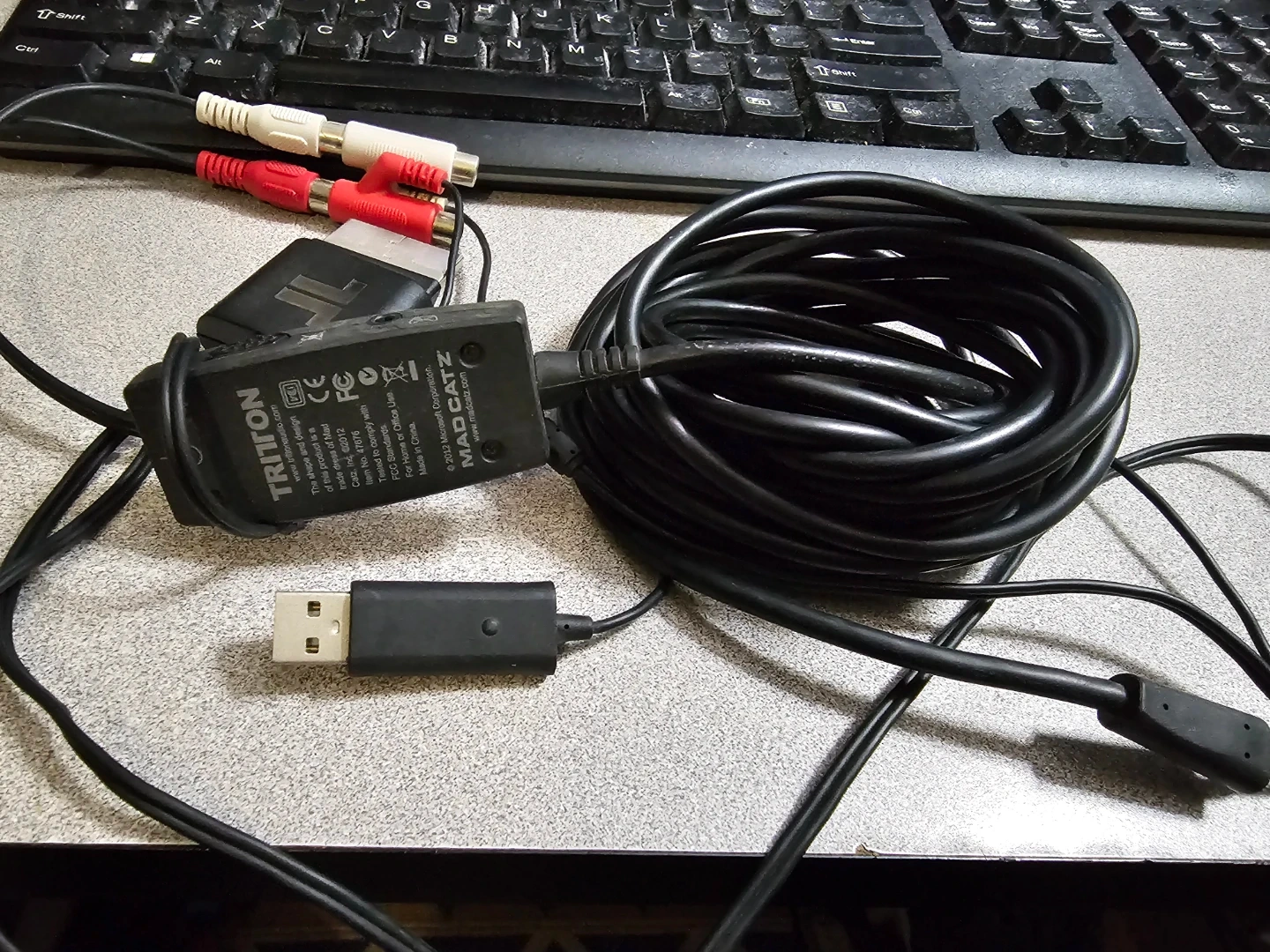 This is a TRITTON audio adapter cable by Mad Catz. It's designed for home or office use. The cable is black and includes a USB connector.