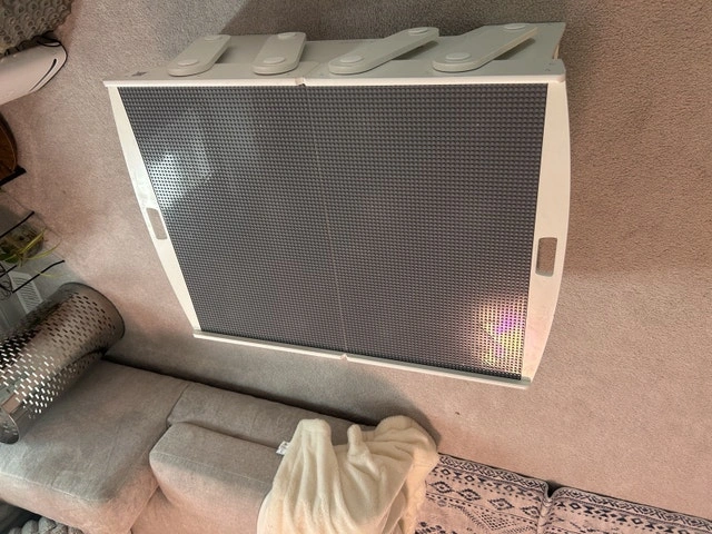 This Lego table is perfect for any young builder, featuring a grey building surface and convenient built-in storage. Small transportation chip at left leg. Grey Building Surface Built-in Storage. If this ad is still up, the table is still available.