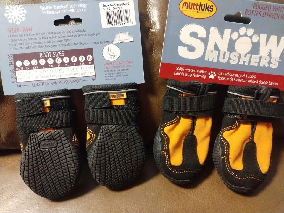 Muttluks Dog Orange/Black Boots 2 Pairs of Snow Mushers Size 3