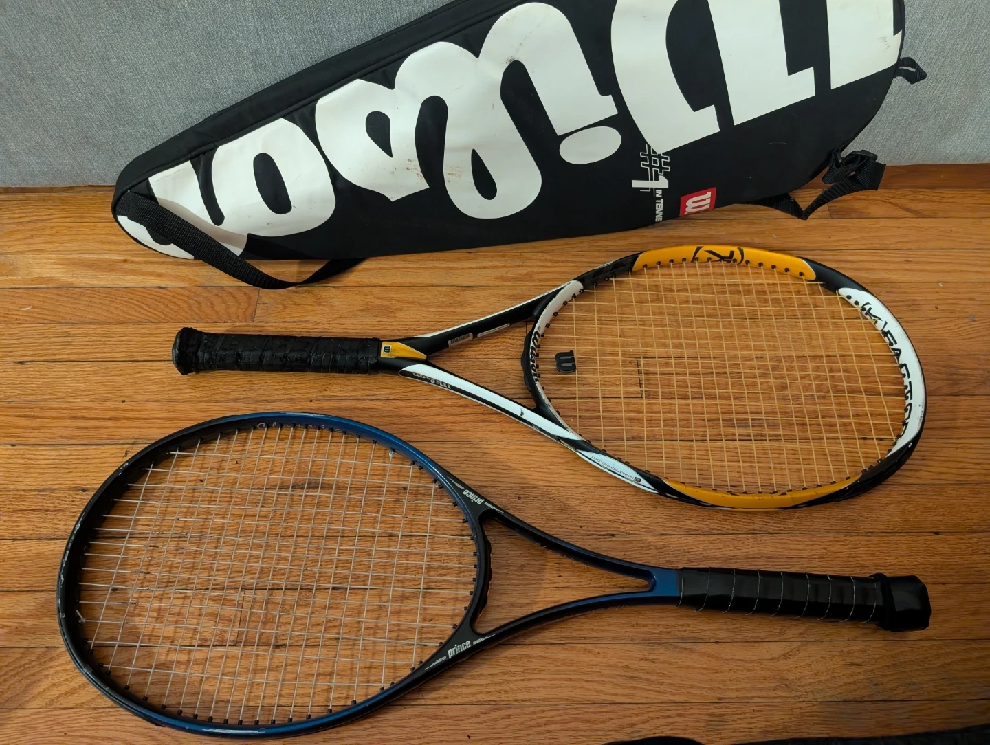 Selling a pair of tennis rackets! One is a Wilson and could use a new grip. The other is a Prince and in great condition. They come with a Wilson carrying case. Great for anyone looking to get into recreation tennis.