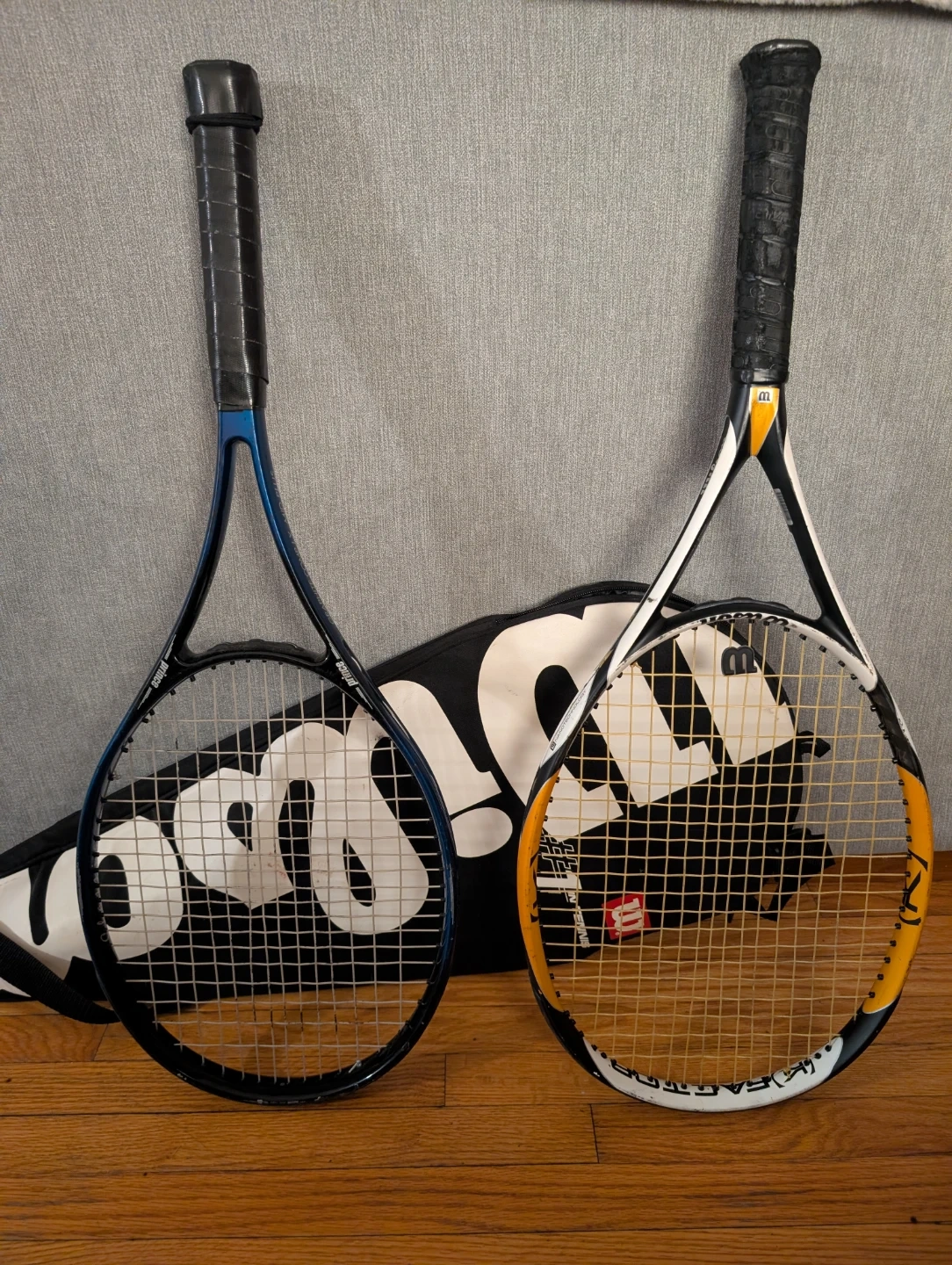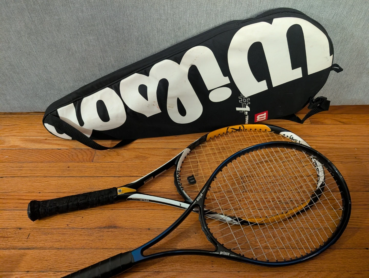 Selling a pair of tennis rackets! One is a Wilson and could use a new grip. The other is a Prince and in great condition. They come with a Wilson carrying case. Great for anyone looking to get into recreation tennis.
