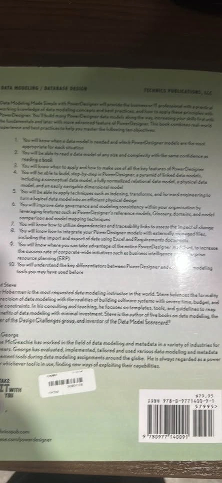 This book, "Data Modeling made simple With Power Designer" by Steve Hoberman, is available for purchase. Let me know if you're interested!