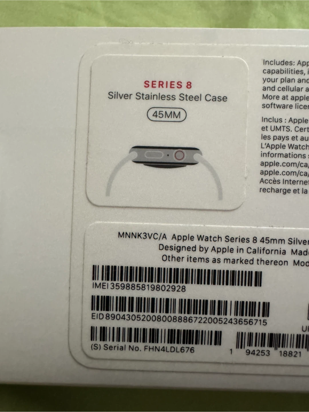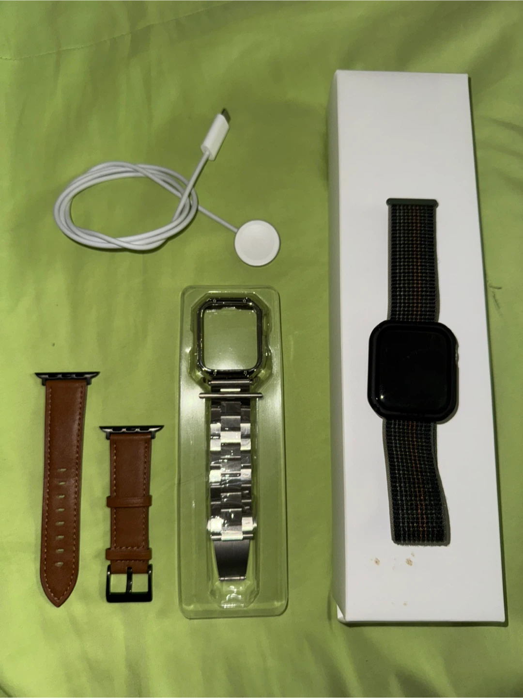 Selling an Apple Watch Series 8 with a 45mm silver stainless steel case! I barely used it so im selling it. It comes with the original box and charger. Also included are additional bands to switch up the look. Great condition!