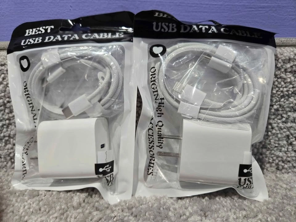 Compatible with iPhone 17/17 Pro/17 Pro Max/Air/16/16e/15, iPad Pro, Air M3/M2/5/4, 11th/10th Gen, and Android phones/tablets. Cable length is 1 meter. This is a 20W fast charger set. It's brand new and sealed, including 2 chargers and 2 cables.