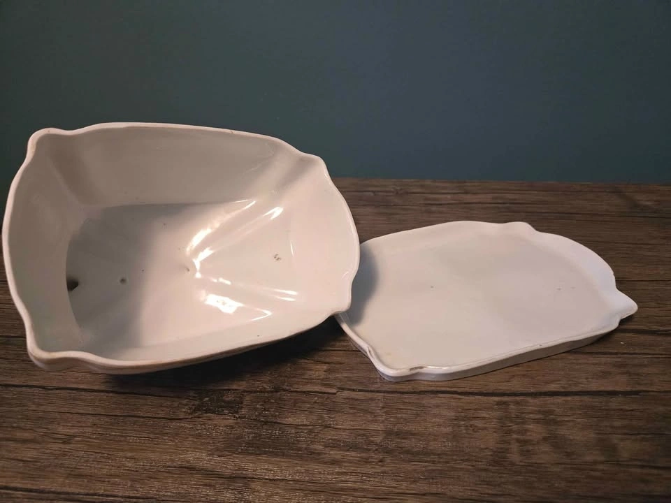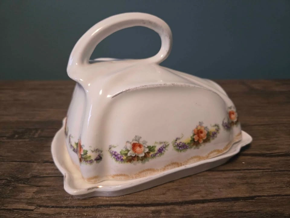 Charming vintage ceramic butter dish with lid. Has pretty floral design and gold trim. Good for kitchen use or display. Pick up Upper Kenilworth and Mohawk area on the East Hamilton mountain.