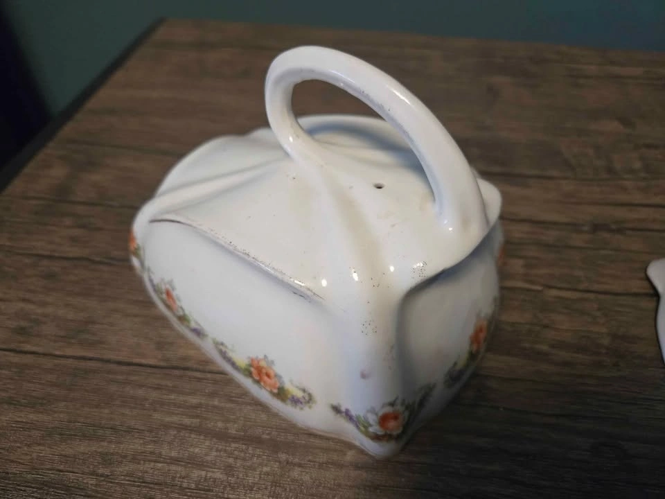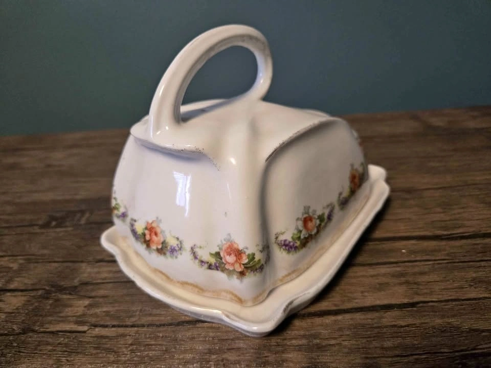 Charming vintage ceramic butter dish with lid. Has pretty floral design and gold trim. Good for kitchen use or display. Pick up Upper Kenilworth and Mohawk area on the East Hamilton mountain.