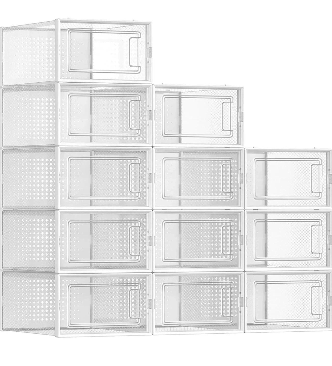 Brand new SONGMICS Shoe Boxes, Pack of 12 Shoe Storage Organizers, Stackable Clear Plastic Boxes for Closet, Fit up to US Size 11, Transparent and White ULSP12SWT