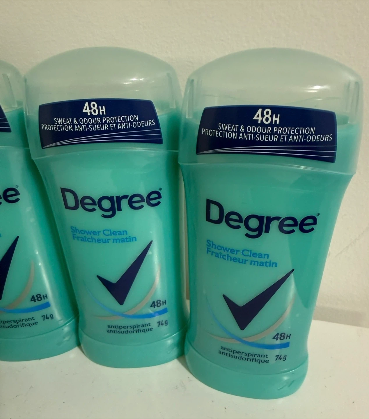 Get 48H sweat & odour protection with Degree antiperspirant. This pack includes five 74g sticks in the Shower Clean scent. It's great for everyday use to keep you feeling fresh.