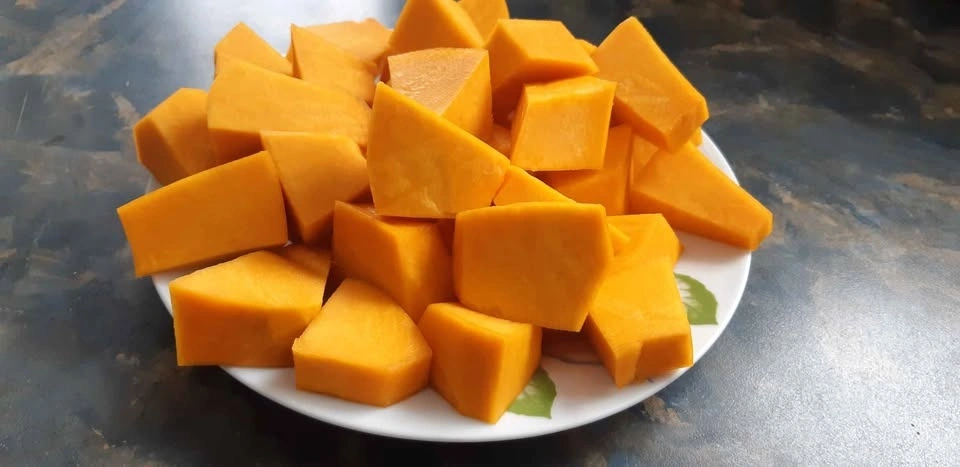 The pumpkin is medium in size, typically weighing around +-5 kg, and is ready for harvest in 90-100 days. The vines grow 3-4.5 meters long, producing 3-5 pumpkins per plant. The bright orange flesh, creamy and sweet, is quite the contrast to the cool coloured exterior. Let Jarrahdale ripen on the vine and harvest just before the first frost arrives. They can then be set out in the sun for a week to allow the rind to harden in preparation for storage.