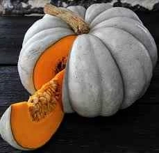 The pumpkin is medium in size, typically weighing around +-5 kg, and is ready for harvest in 90-100 days. The vines grow 3-4.5 meters long, producing 3-5 pumpkins per plant. The bright orange flesh, creamy and sweet, is quite the contrast to the cool coloured exterior. Let Jarrahdale ripen on the vine and harvest just before the first frost arrives. They can then be set out in the sun for a week to allow the rind to harden in preparation for storage.