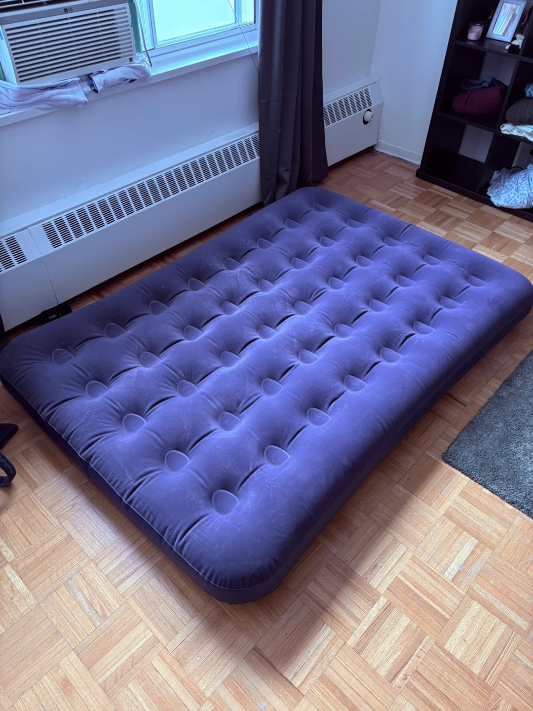 Outbound double air mattress for camping or guests. Includes quick inflation/deflation screw valve and repair patch. It's 188 cm x 137 cm (74" x 54"). Used only once. Can meet at Davisville station.