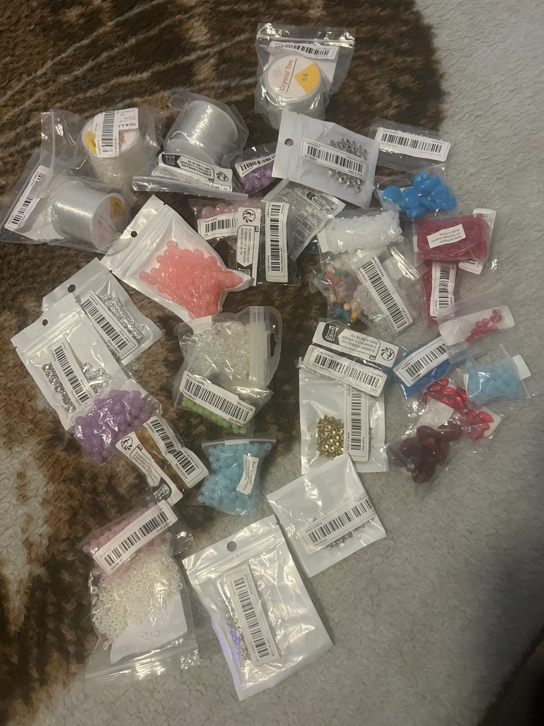 Assorted lot of crafting supplies, including beads (both 6mm & 8mm), spacers, and elastic string (for both 6mm & 8mm). Never been used/opened. $20 for all/pickup southeast Vancouver.