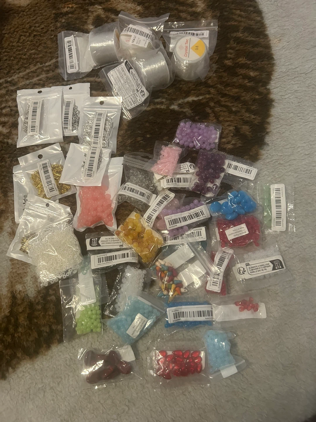 Assorted lot of crafting supplies, including beads (both 6mm & 8mm), spacers, and elastic string (for both 6mm & 8mm). Never been used/opened. $20 for all/pickup southeast Vancouver.