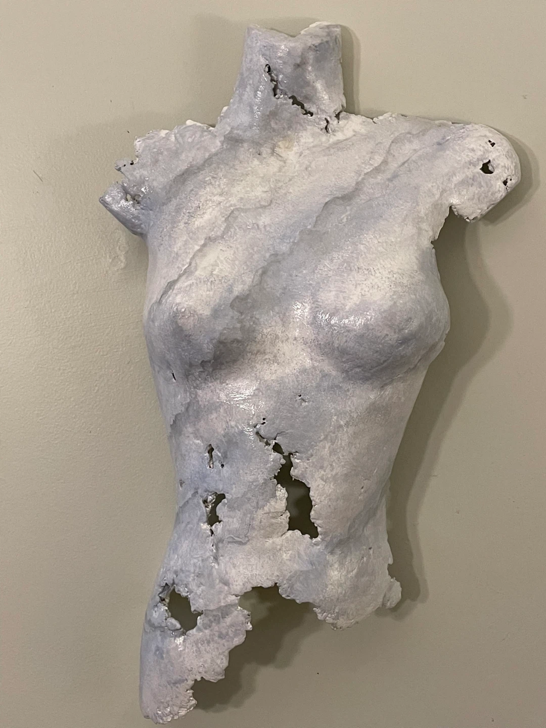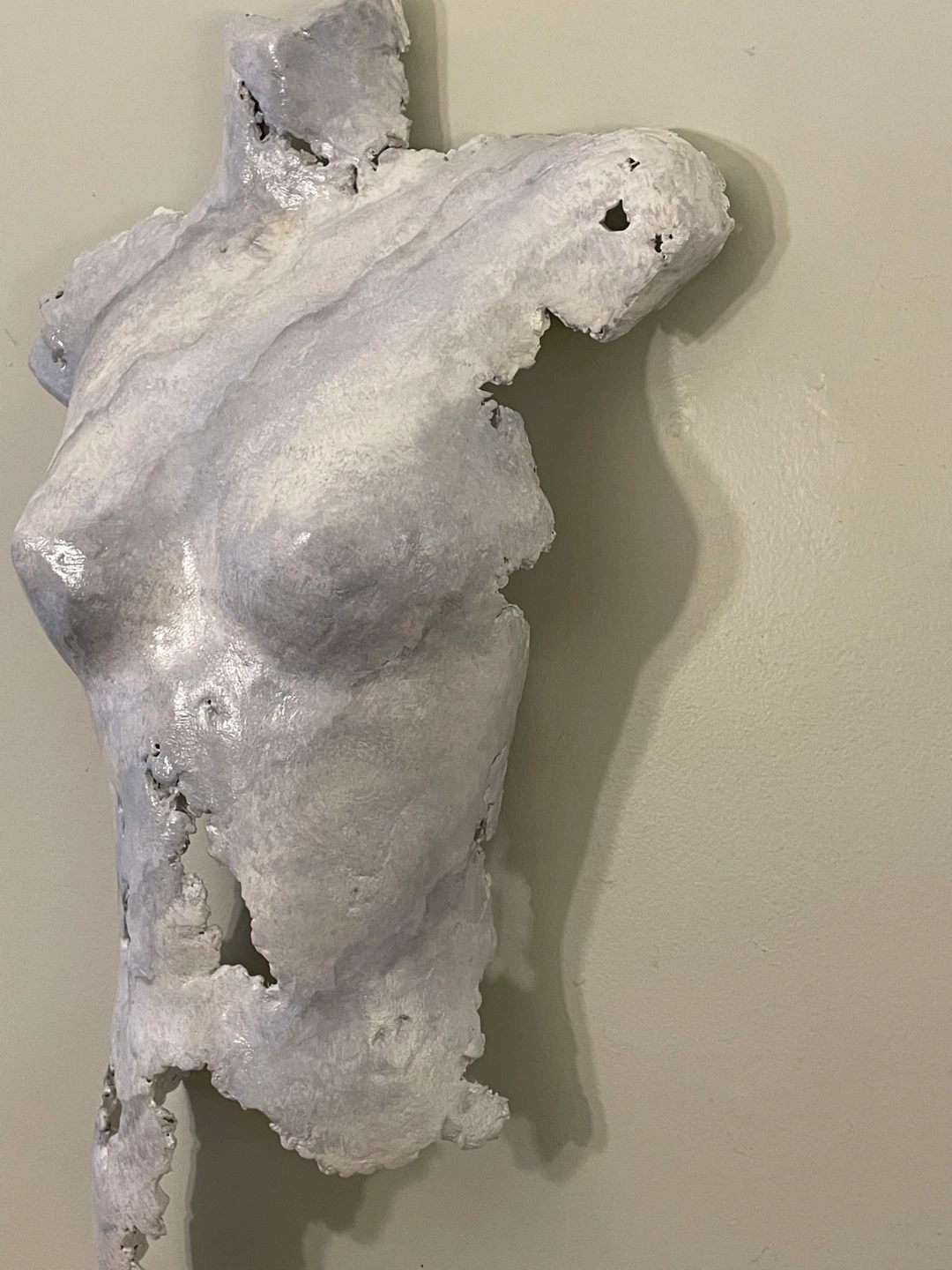 Inspired by sculptural fragments on a trip to the ROM, this one of a kind sculptural wall hanging will bring classic art and scintillating conversation to any room.