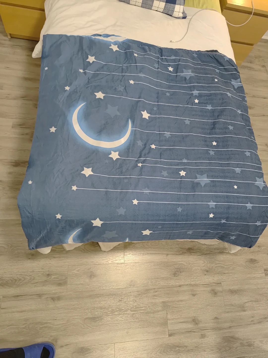 Selling a queen-size duvet cover set in moon & stars. The material is soft and comfortable.