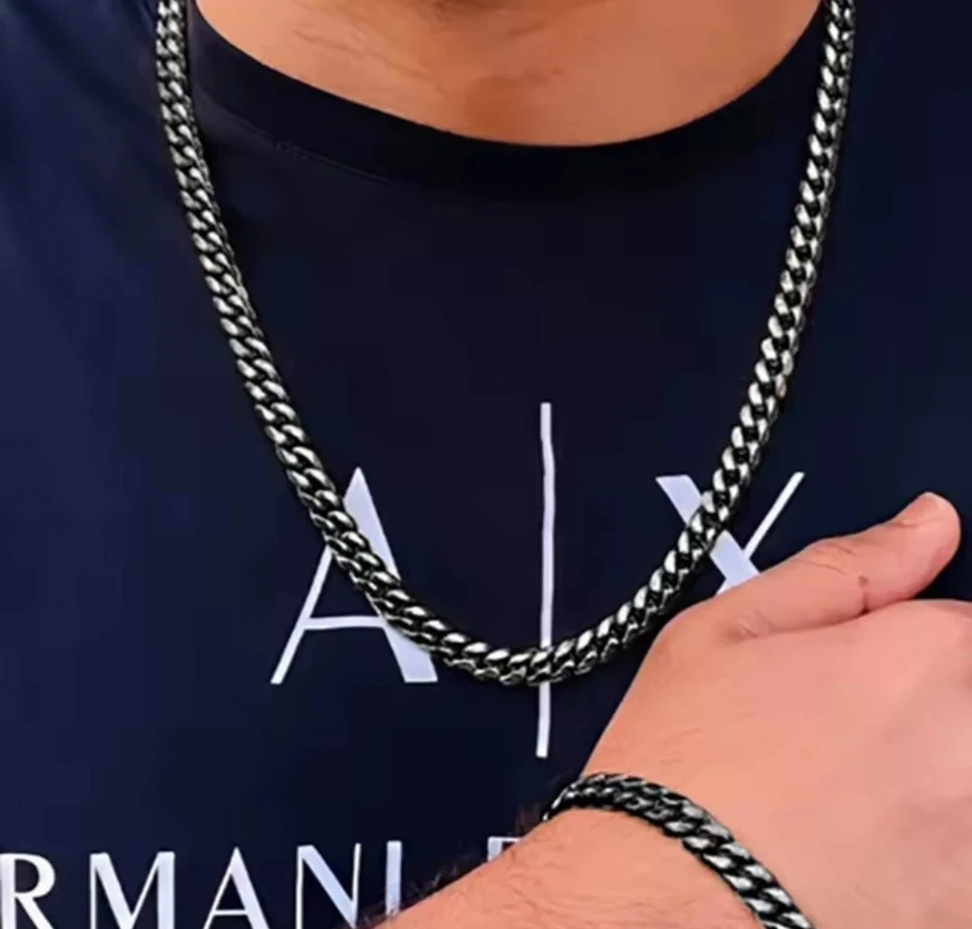 Silver Franco Link Chain Necklace and Bracelet Set
