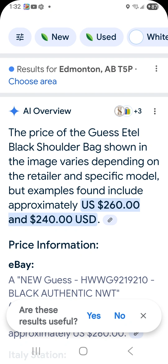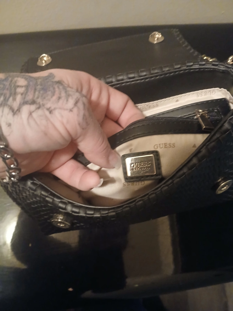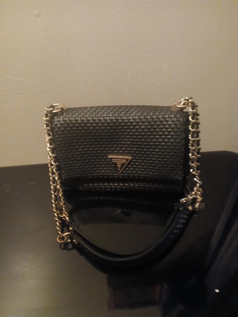 Selling a stylish black Guess crossbody bag! It features a woven design and a chain strap, perfect for adding a touch of elegance to any outfit. It's in great condition and ready for a new home. the last pic that I posted was to show the Google results when Google lenzimg the purse it's very close to the original price so $100 is what im offering for it