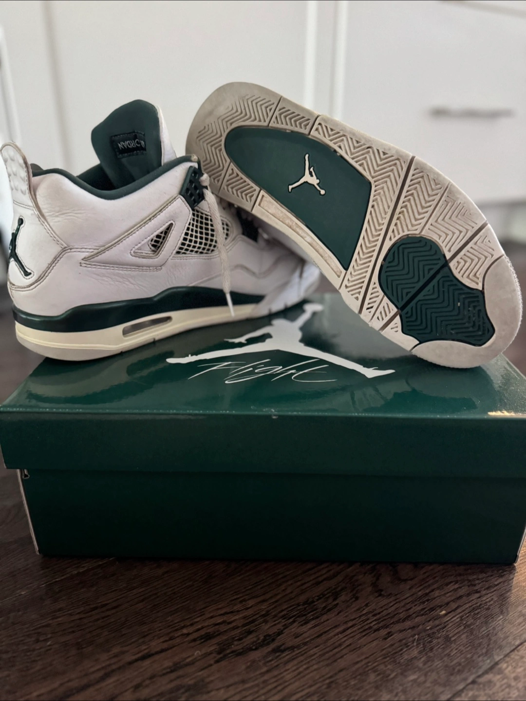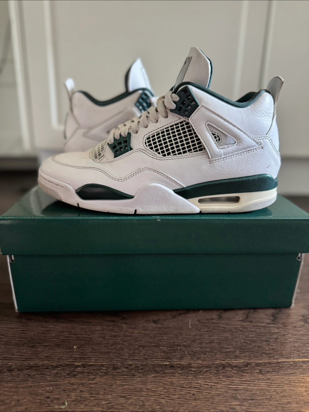 Selling a pair of Nike Air Jordan 4 Retro SP Pine Green sneakers in US size 9