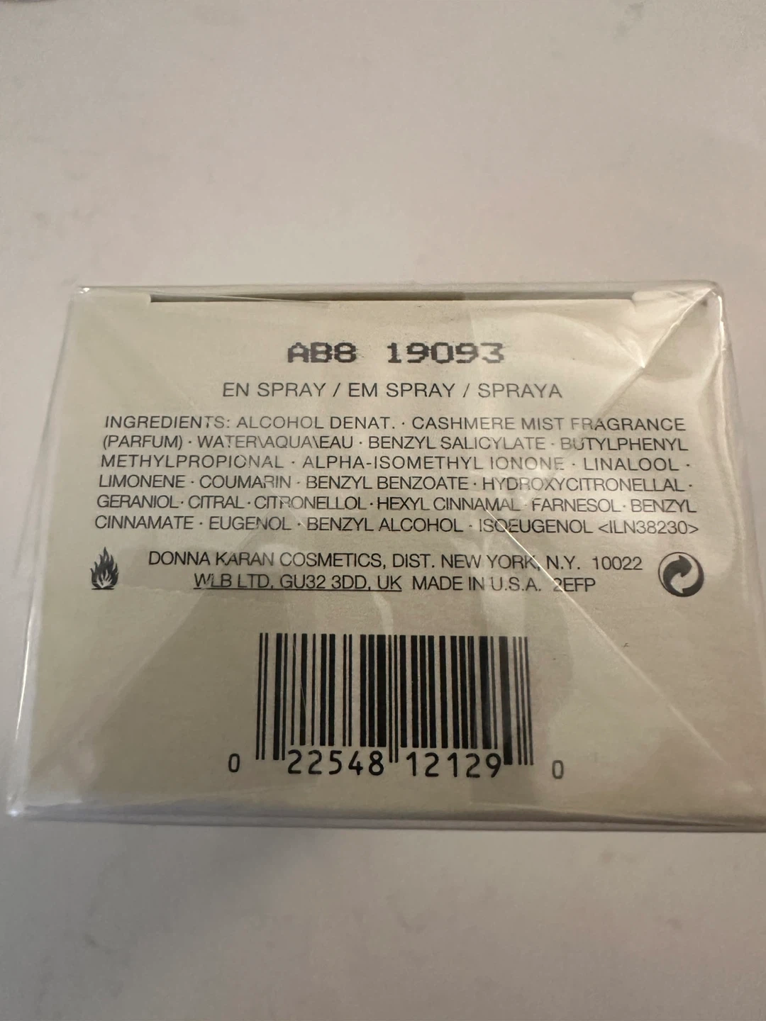 New, sealed, never opened Donna Karan Cashmere Mist Eau de Parfum spray. It's a 3.4 fl. oz. (100 ml) bottle. The fragrance is described as a sumptuous caress of luxury.