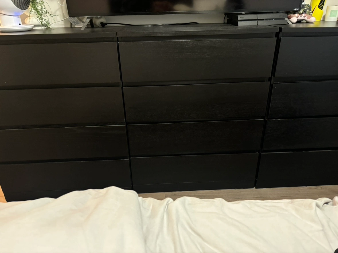 I have 4 Black IKEA MALM dresser with 4 drawers. It is in good condition and was purchased from IKEA. $120 each discount if you purchase more then 1 !