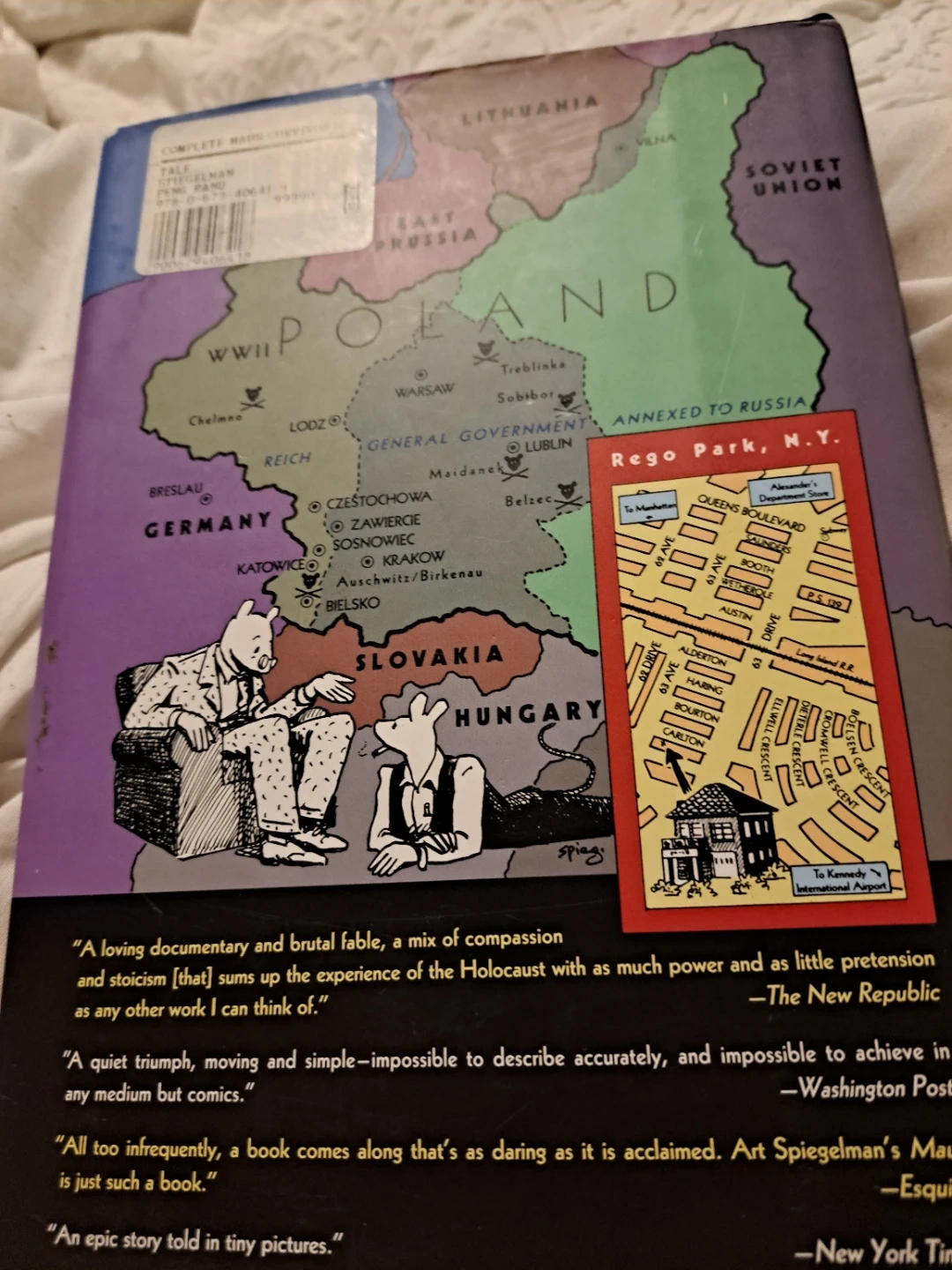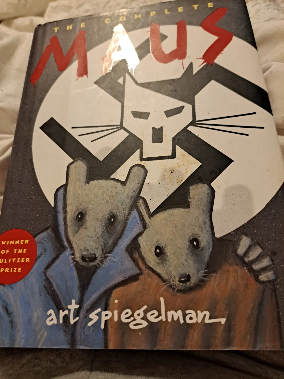 This is the complete graphic novel MAUS by Art Spiegelman. It's a Pulitzer Prize winner. It tells a story about the Holocaust through the eyes of mice.