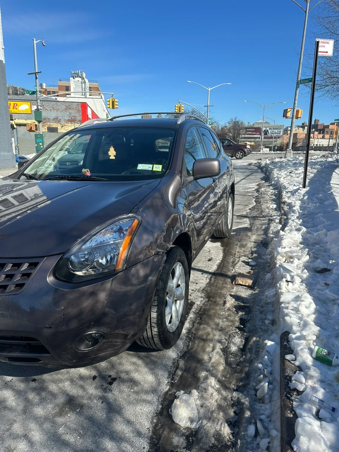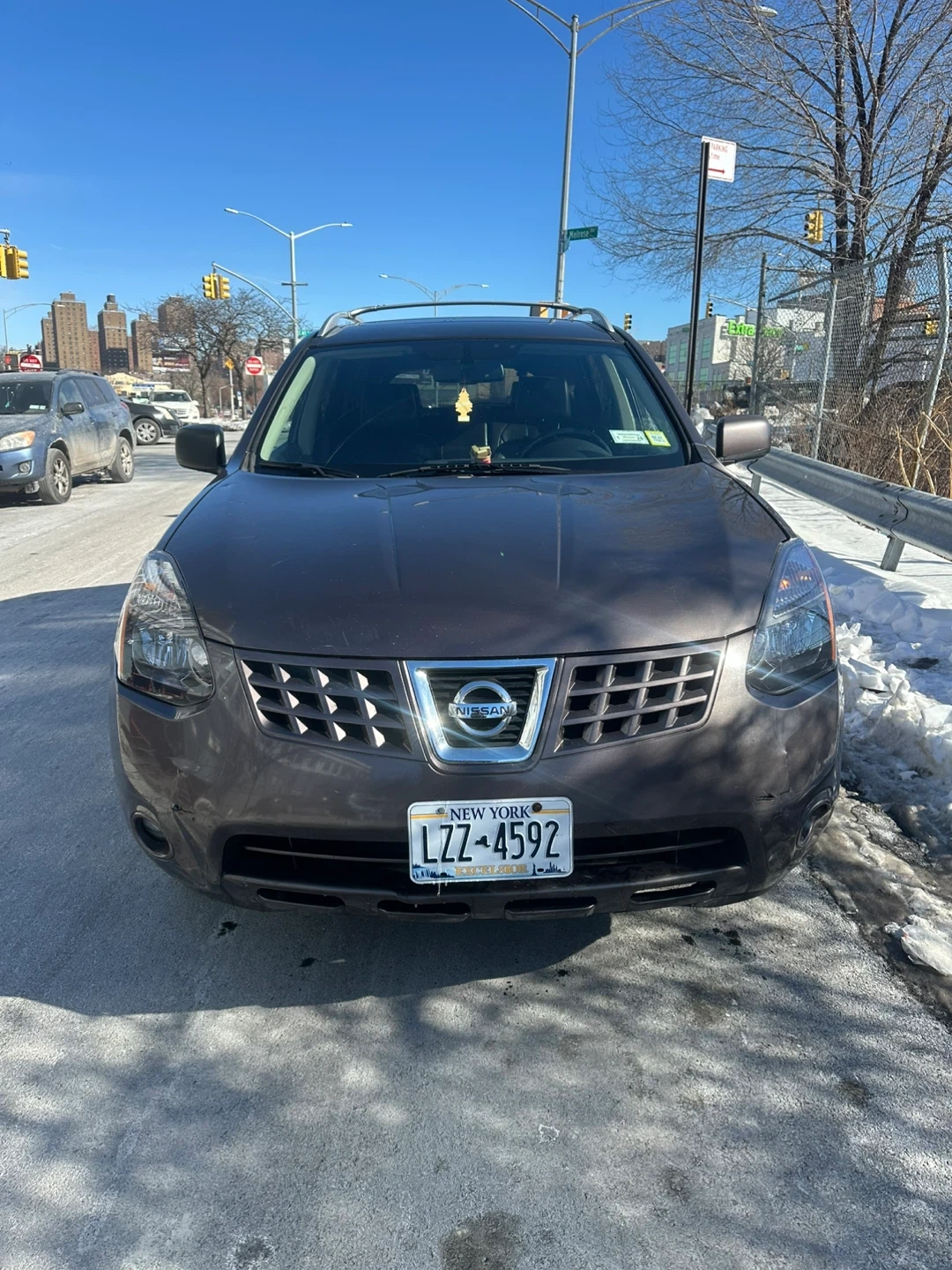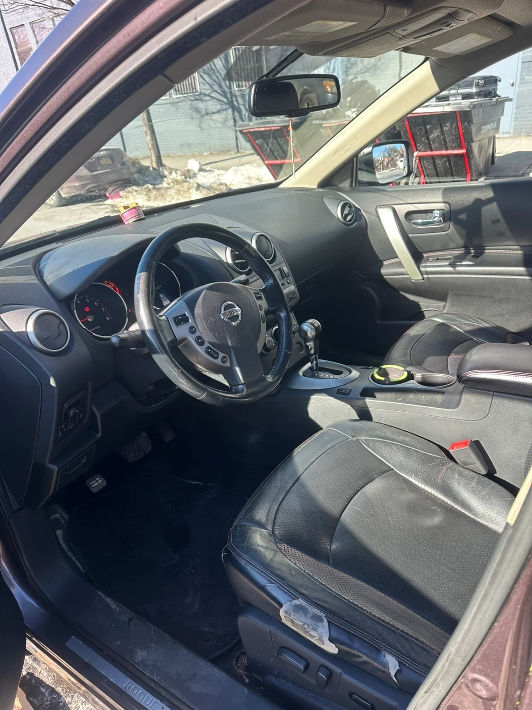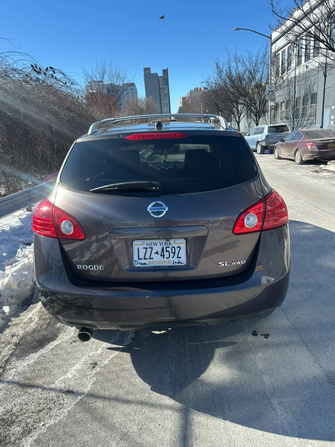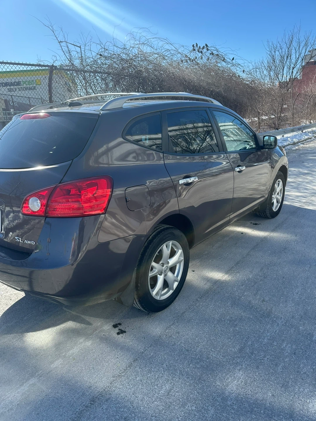 This is a Nissan Rogue SL AWD SUV. It's a dark gray color with silver wheels sun roof heated seats .heat and ac work great . It features a roof rack for extra storage mileage 107.. It's a practical choice for everyday driving.